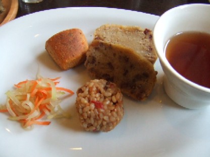 トマト酵母の炊き込み玄米ご飯・大根と人参の漬物・スコーン・パウンドケーキの全て酵母を使ったマクロビオテック料理の試食です。