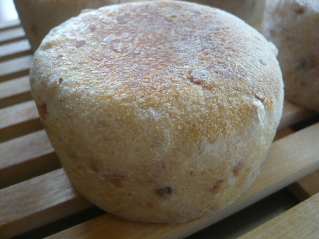 先週、ぶどう種を起こし昨日、黒米入り玄米の生地を仕込んでおいたので朝から分割・成形・二次発酵・焼成。