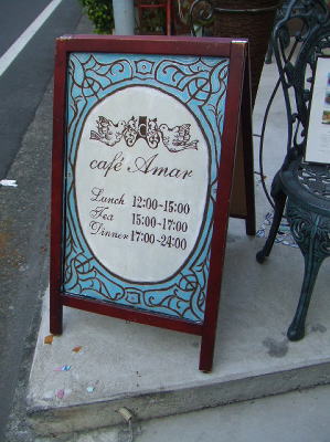ランチをする予定だった「Cafe Amar」は雑誌撮影の為、45分遅れのオープンと言う事でランチを断念・・。