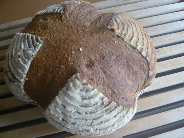 先週、ぶどう種を起こし昨日、黒米入り玄米の生地を仕込んでおいたので朝から分割・成形・二次発酵・焼成。